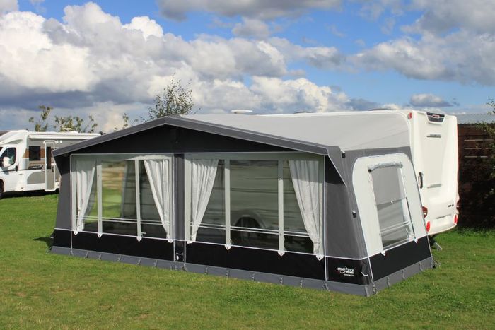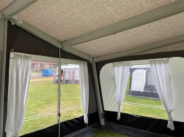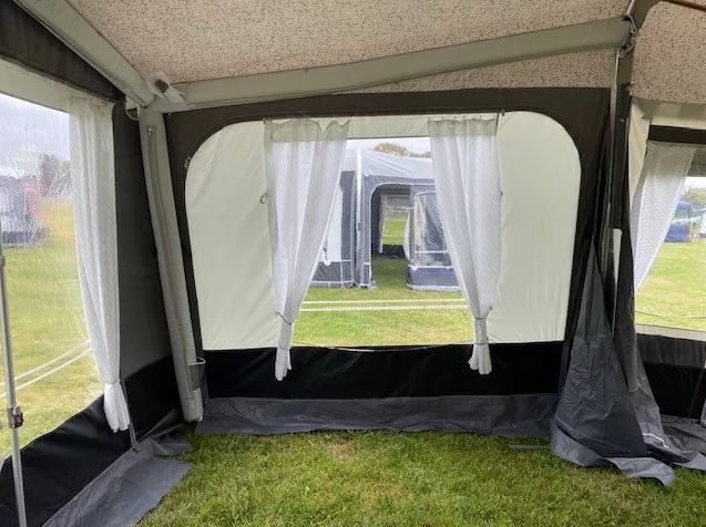 The large windows create a light and airy space, with the option to partially or fully zip them out for increased ventilation or to open the awning during pleasant weather. These windows can also be rolled back to form large front doors, catering to the practical needs of any family size. Additionally, the Kensington includes two zipped ventilation points for fresh air when needed.