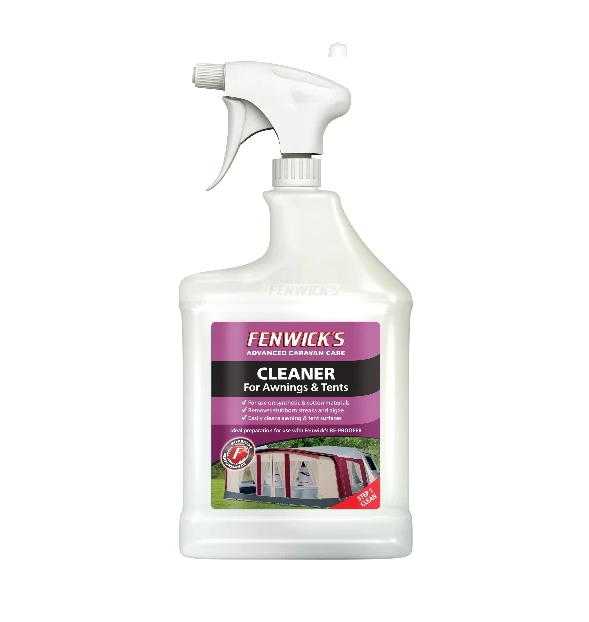 Fenwicks Cleaner for Awnings & Tents will easily remove black streaks, green algae, road traffic film, diesel fumes,and over wintering grime, etc. Suitable for cleaning synthetic and colour fast canvas fabrics.