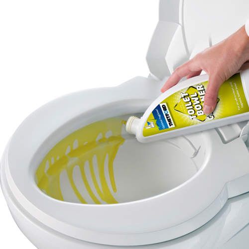 A plastic and ceramic safe cleaning agent for the inside of the toilet bowl.