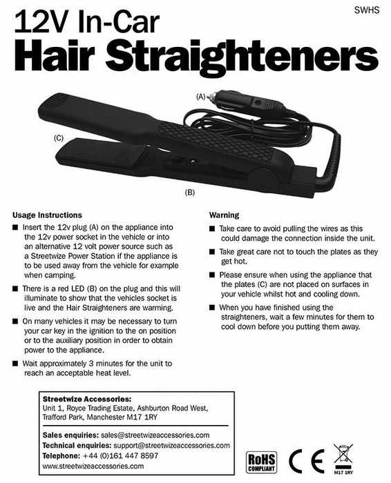 In-car Hair Straighteners with ceramic plates