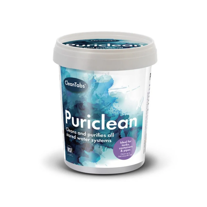 Puriclean 400g dual action powder, cleans and purifies whole water systems including tanks, hoses, fittings and taps.