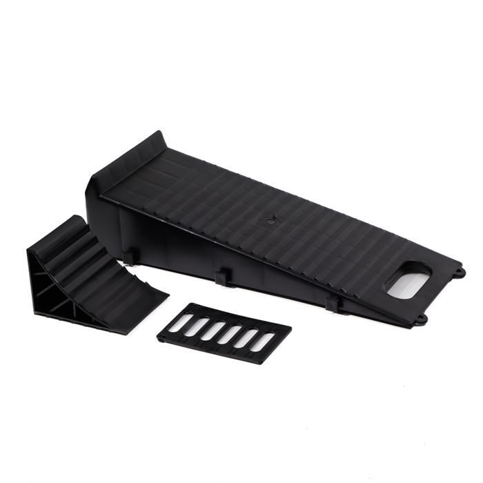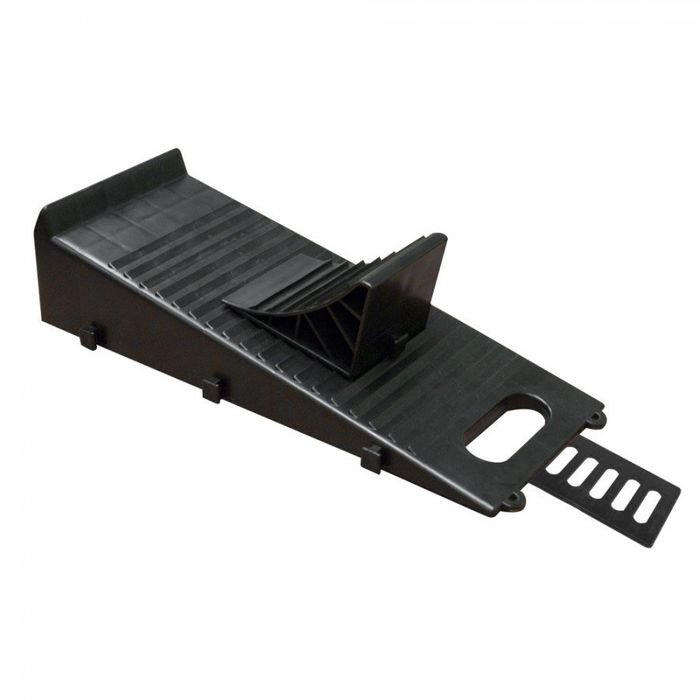 the Chock Master set - the perfect tire security solution for caravanners and motorhome users. This set includes a ramp and chock, with a wide and solid base to prevent sinkage on soft ground. Suitable for most vehicles and can be linked to others for a wider base. Travel with confidence and stability.