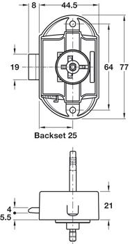 This push lock button can be operated from one or both sides, with or without a spring bolt. Please see above photo for specifications.