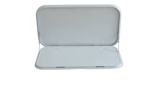 They feature powder coated stainless steel hinges, full size backing plate, chrome locks and have a 25Kg weight rating.