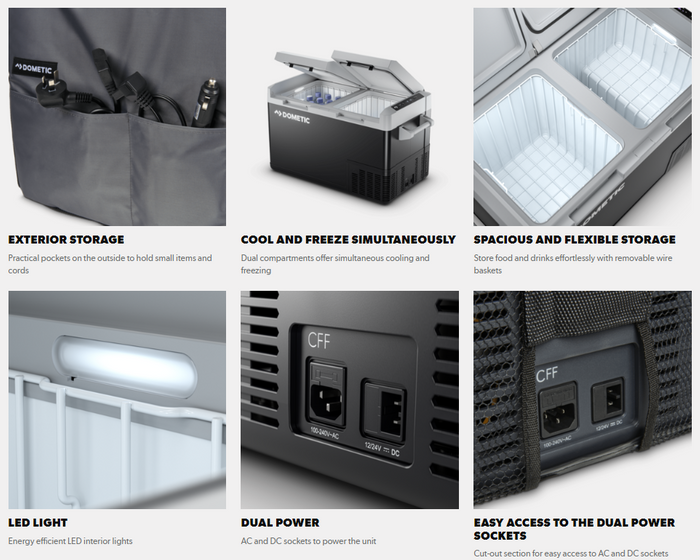 The Dometic CFF 70DZ Pack features dual storage compartments with independent temperature control for simultaneous cooling and freezing in any combination, making it a versatile portable fridge and freezer that is flexible, and remarkably user friendly. It comes with a digital electronic control system and can keep its interior as low as –18 °C. Enjoy the flexibility to choose between running the CFF 70DZ as a fridge, freezer or both, removing the boundaries when it comes to deciding what to pack for a trip. The CFF range was designed for more effective use of storage space and temperature distribution, with dimmable digital displays making it easy to set and monitor in any ambient light. The CFF range is a perfect choice for the outdoor enthusiast to upgrade from a traditional icebox. The CFF 70DZ Pack includes an insulated cover that helps protect your fridge or freezer from dirt, dust, sand, moisture, and water splashes. This new insulated cover is the next step in caring for your CFF 70DZ.