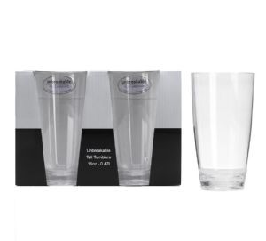 Polycarbonate tall tumblers. Contains 2 per pack.