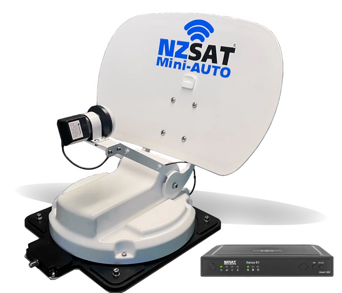 The NZSAT Mini-Auto is a fully automatic RV satellite dish designed for New Zealand.