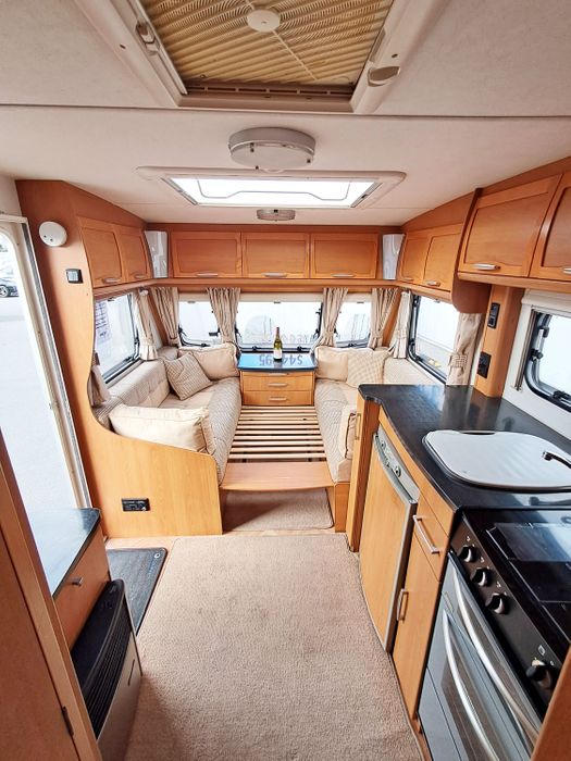 2009 Lunar Lexon SI is a Four berth Caravan with Rear Private Island bed layout with a Large front dinette and a free standing table. The front settees give a good amount of seating for use during the day and convert for sleeping at night. The inside of the caravan has a modern finish with neutral tones. Above the front seating area is a Large Rooflight for natural light. The Truma heating system ensures comfortable temperatures in the colder months.