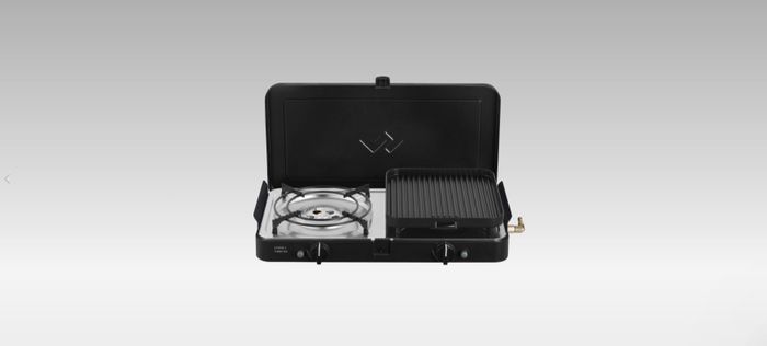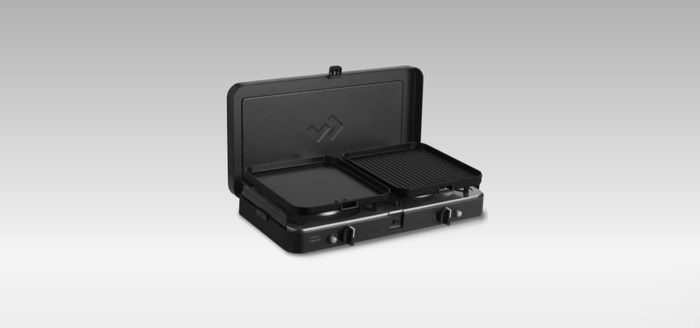 New integrated flame failure device (FFD) that will shut off gas in case of flame out, while also allowing the stove to be installed via caravan bayonet when using appropriate Quick Release hose fitting (sold separately). The new inner flame burner design provides higher heat output when compared to the Dometic 2 Cook 3 Pro Deluxe. This stylish, lightweight portable gas stove is the ultimate addition to your camping kit, with two independent burners. Well equipped for versatile cooking, the appliance comes standard with two pot stands, an additional coffee stand as well as a ceramic coated grill plate and ribbed plate. The set also includes a practical handle for removing the grill plates when hot. Two windshields to be fitted on the sides of the stove to protect the flame.