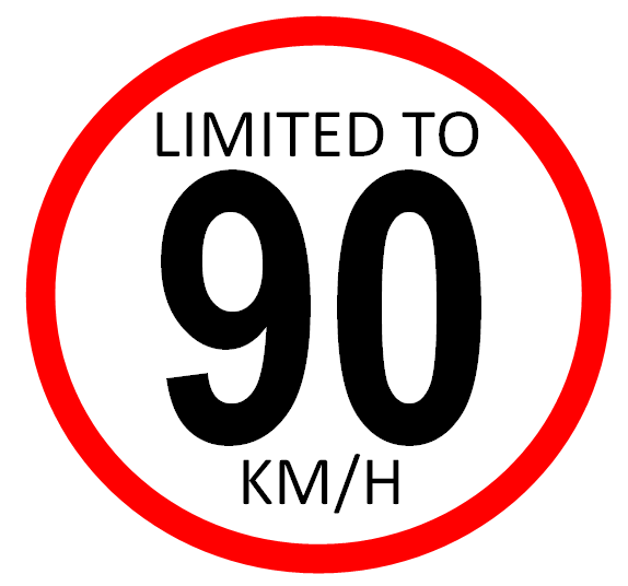 - Limited to 90km/h White Sticker