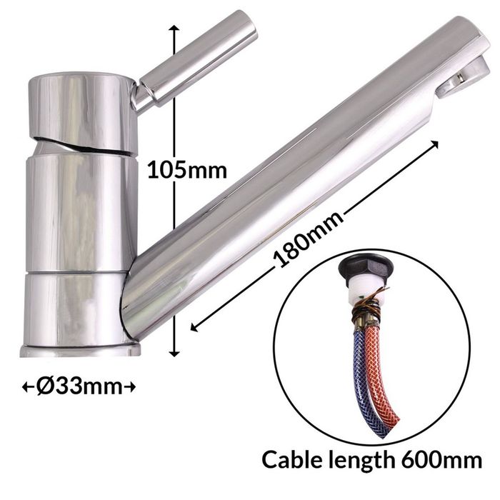 Plastic chrome coated mixer tap with 33mm installation hole size.