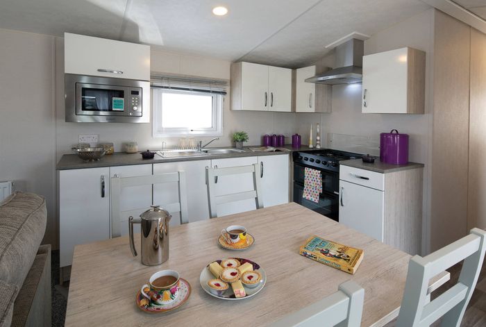 The Saffron deluxe is a new very affordable unit with a sleek & clean modern feel, free standing furniture and furnishings throughout - of course, not forgetting the features of the integrated fridge/freezer & microwave - such cool features to this Static Caravan really is what makes this unit real value for money.