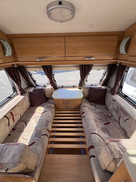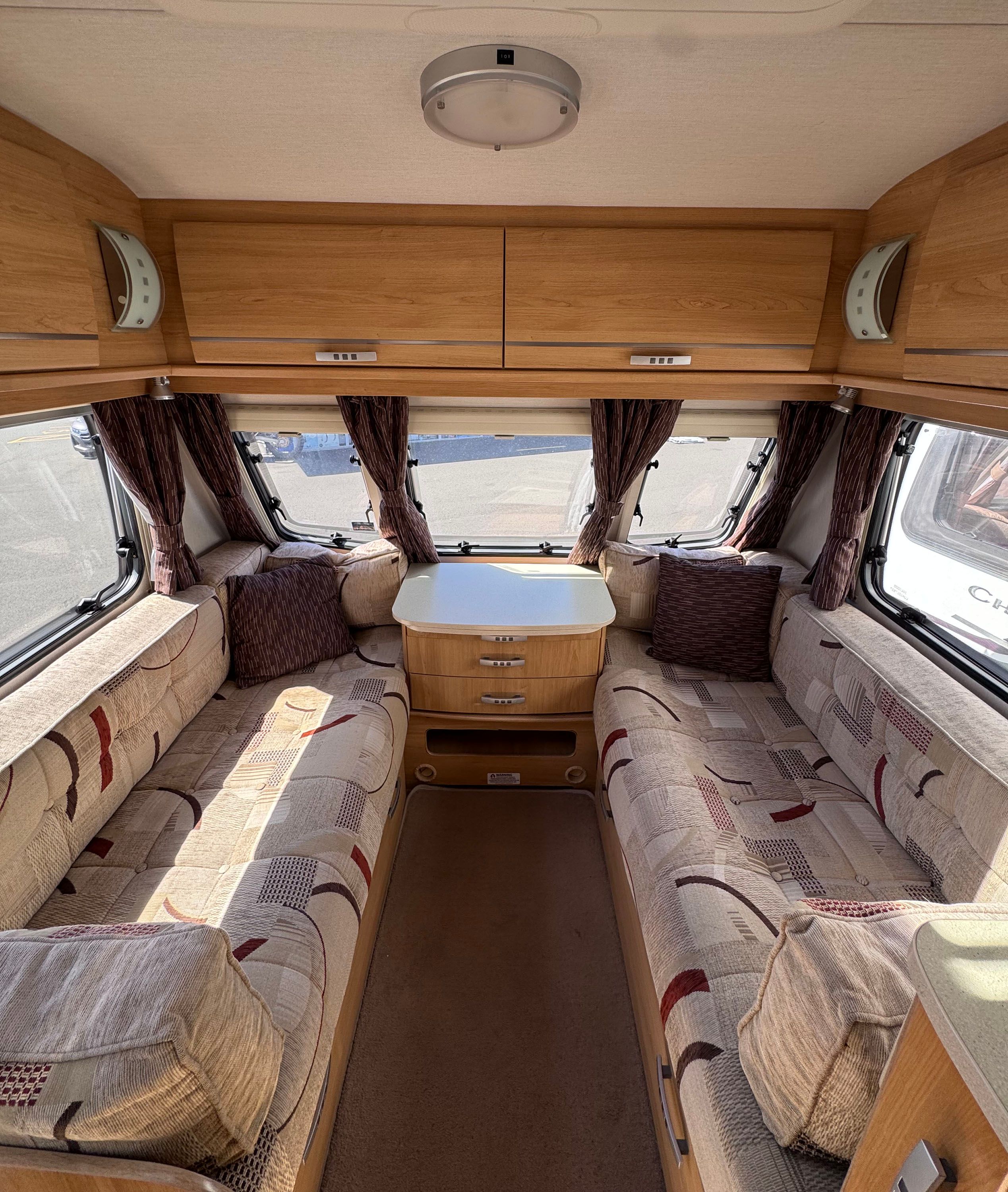 2010 Lunar Quasar 544 is a Four berth Caravan with a Rear right hand fixed bed and a Large front dinette and a free standing table. The front settees give a good amount of seating for use during the day and convert for sleeping at night. The inside of the caravan has a modern finish with neutral tones. Above the front seating area is a Large Rooflight for natural light. The Truma heating system ensures comfortable temperatures in the colder months.
