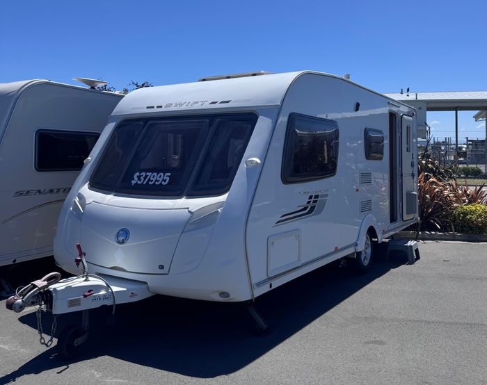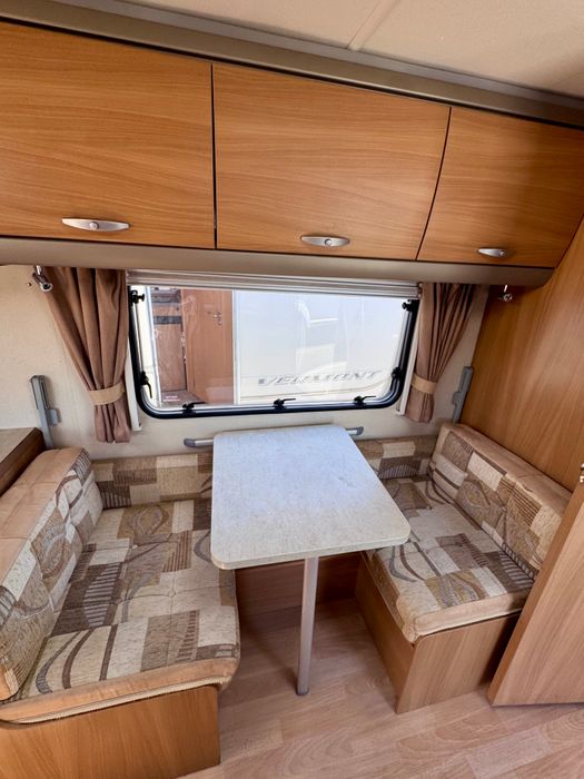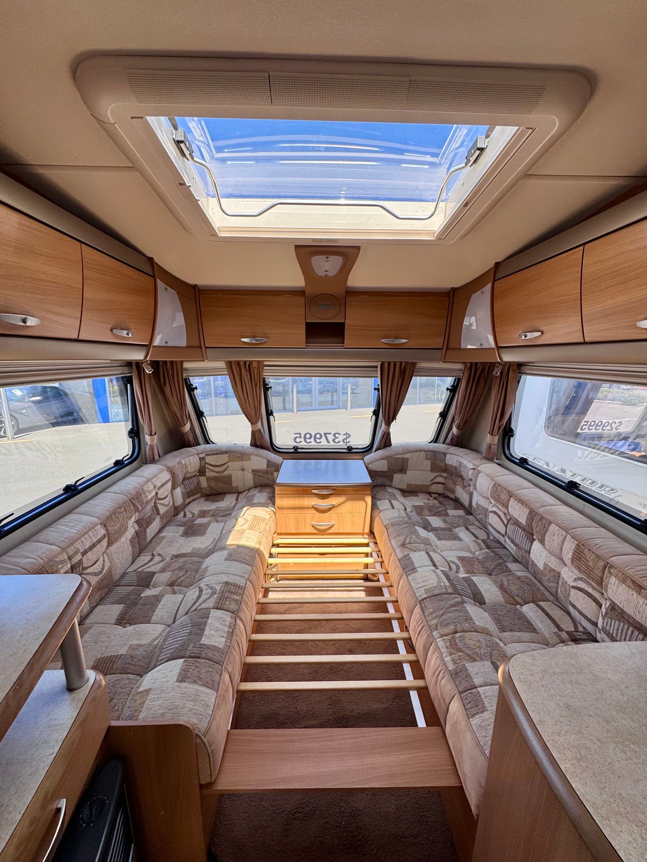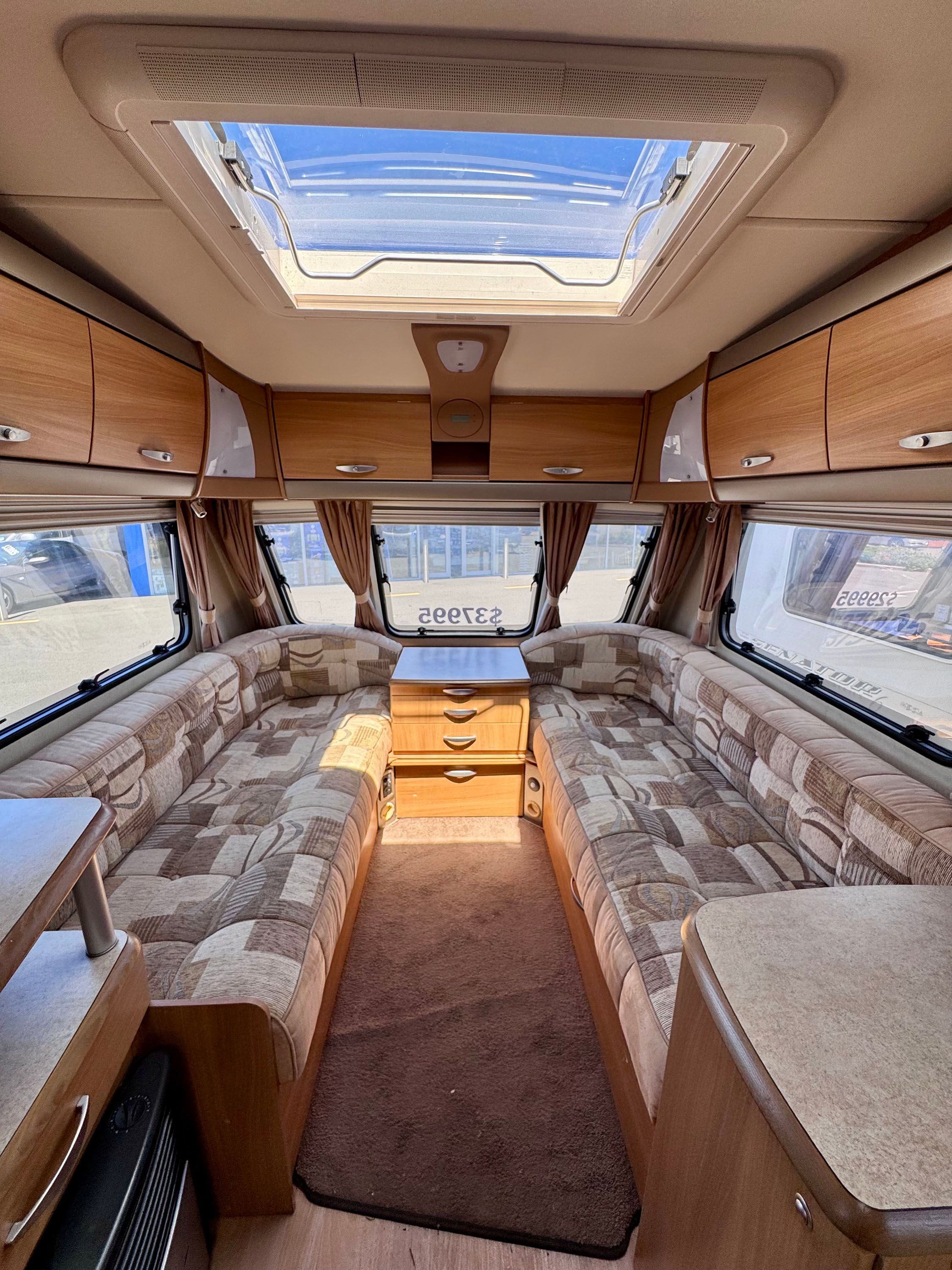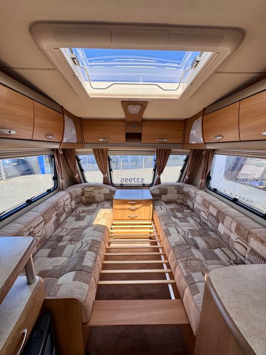 2009 Swift Challenger 530 is a Four berth Caravan with a Central Bunk and Large front dinette and a free standing table. The front settees as well as the central dinette give a good amount of seating for use during the day and convert for sleeping at night. The inside of the caravan has a modern finish with neutral tones. Above the front seating area is a Large Rooflight for natural light. The Truma heating system ensures comfortable temperatures in the colder months.