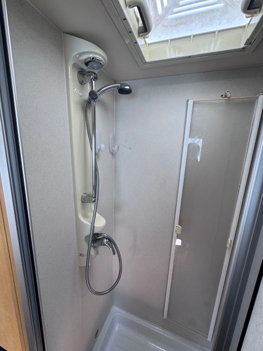 Rear kitchen, by the sink you will find a Spinflo 4-burner gas hob, grill, oven and microwave. A sink and a 3-way Thetford fridge and freezer. The Rear bathroom offers a private toilet, a vanity and basin and a large shower cubicle. This caravan also comes with a Thetford cassette toilet.