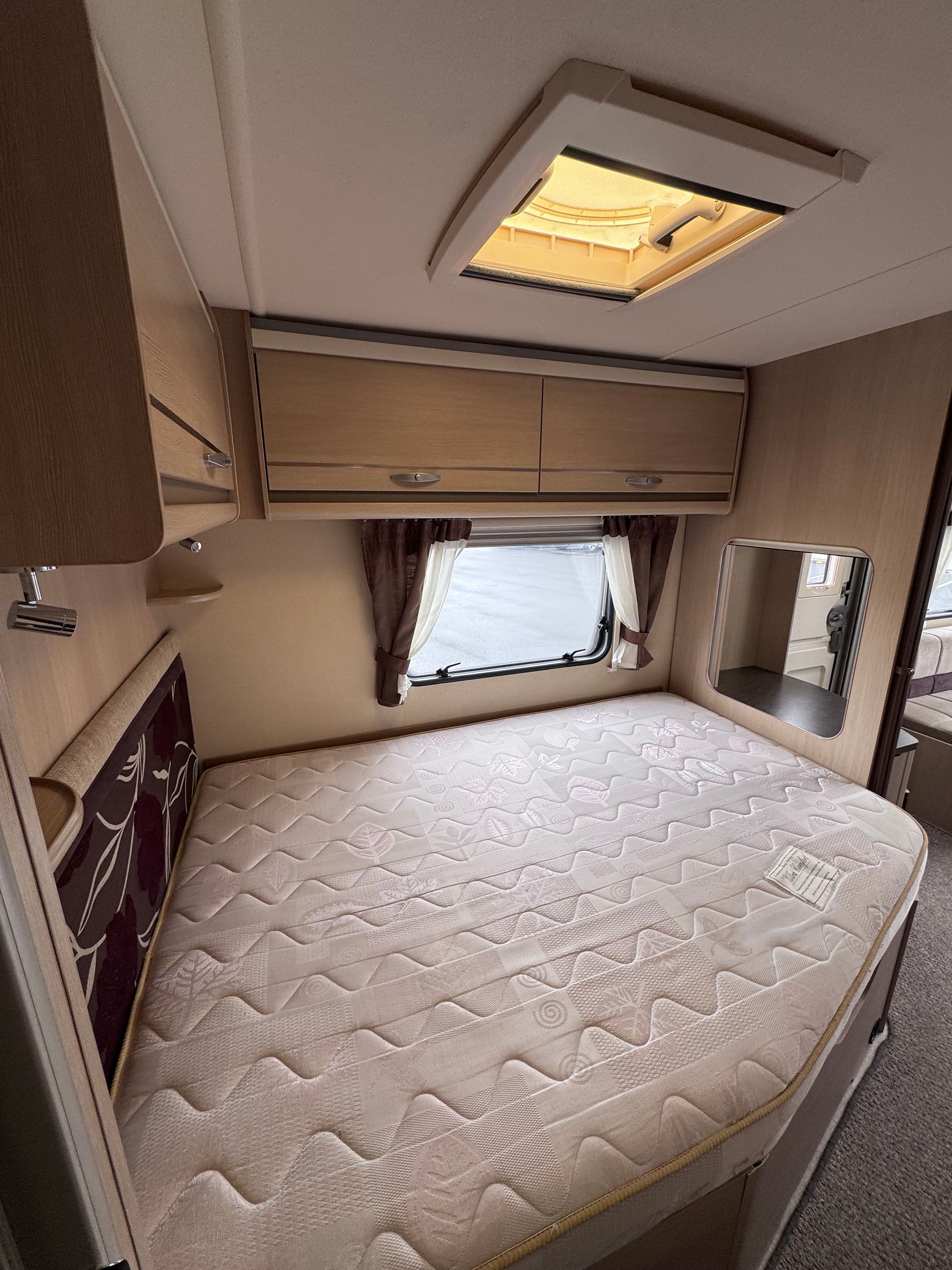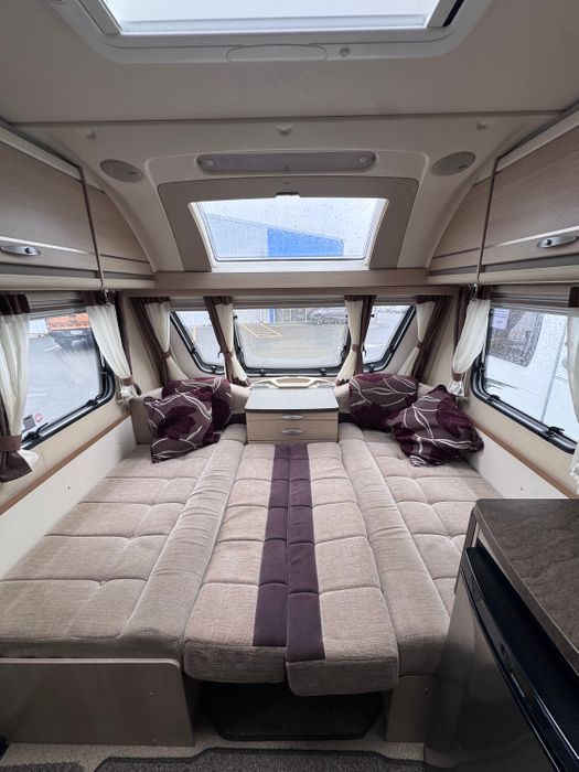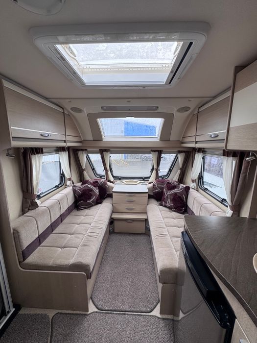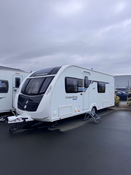 2012 Sterling Coastline is a Four berth Caravan with a Rear Fixed bed and Large front dinette and a free standing table. The front settees give a good amount of seating for use during the day and convert for sleeping at night. The inside of the caravan has a modern finish with neutral tones. Above the front seating area is a Large Rooflight for natural light. The Truma heating system ensures comfortable temperatures in the colder months.