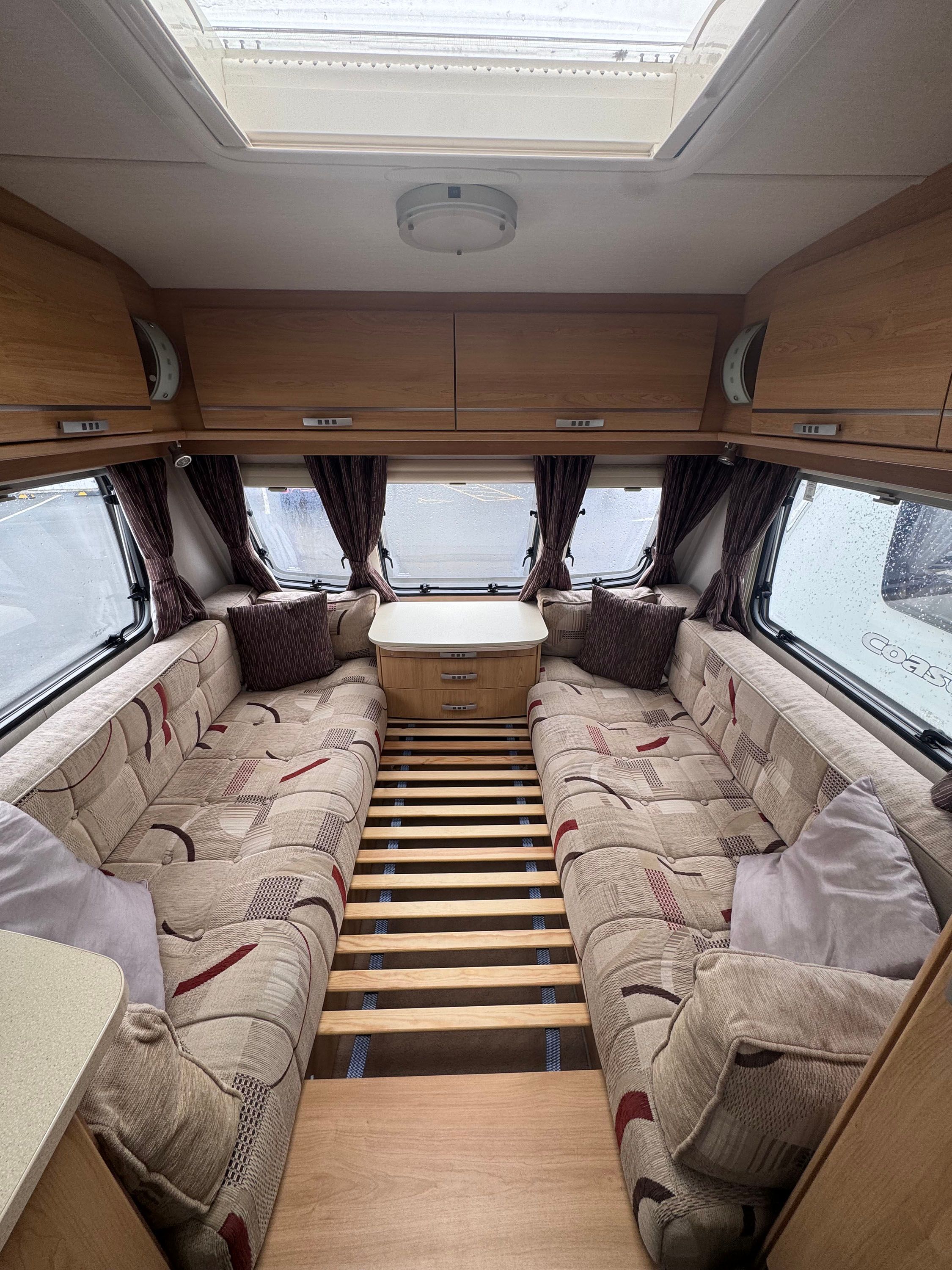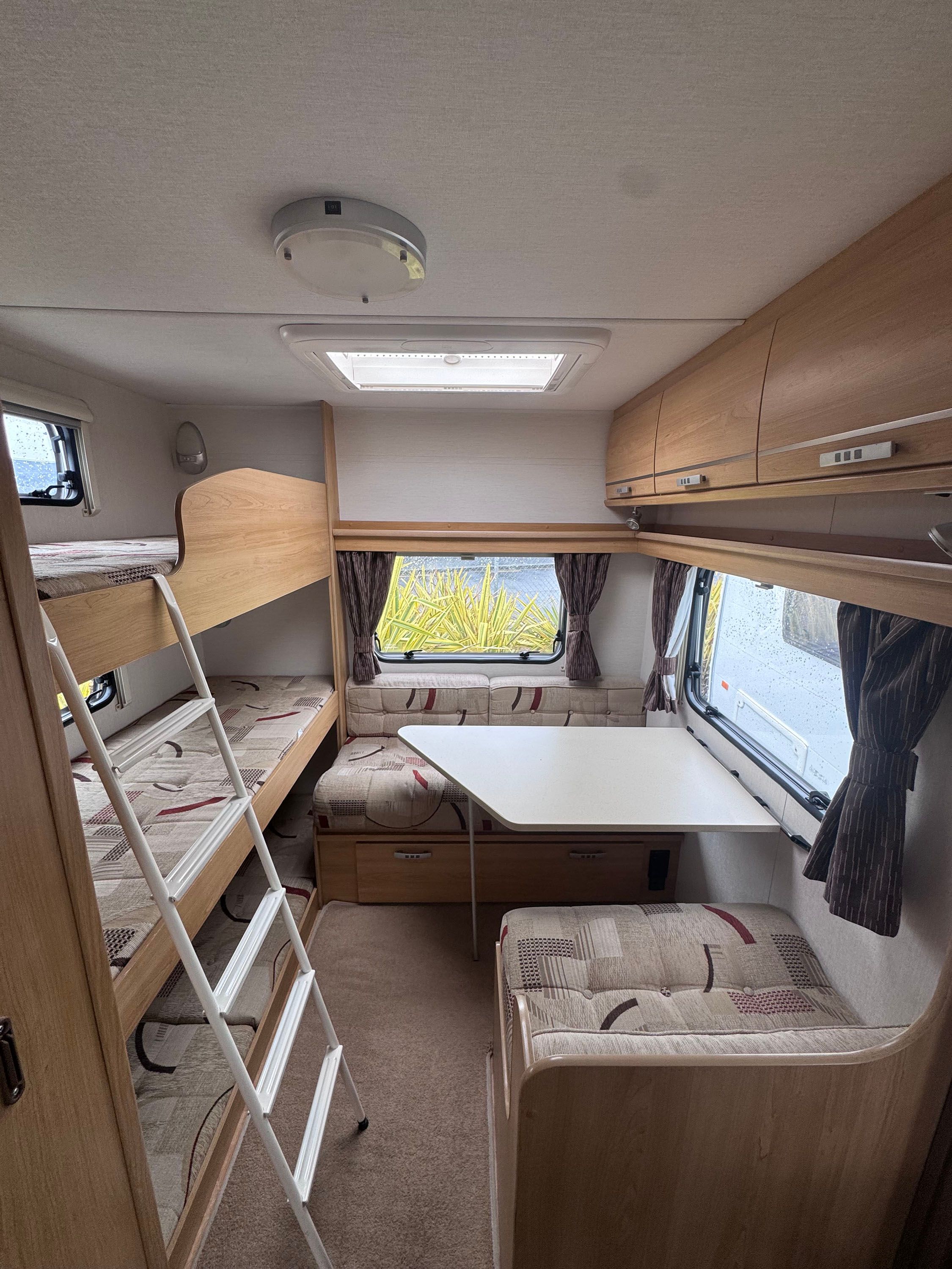 2010 Lunar Quasar 546 is a Six berth Caravan with a Rear Dinette, Triple Bunk and Large front dinette and two free-standing tables. The front settees give a good amount of seating for use during the day and convert for sleeping at night. The inside of the caravan has a modern finish with neutral tones. Above the front seating area is a Large Rooflight for natural light. The Truma Heating system ensures comfortable temperatures in the colder months.