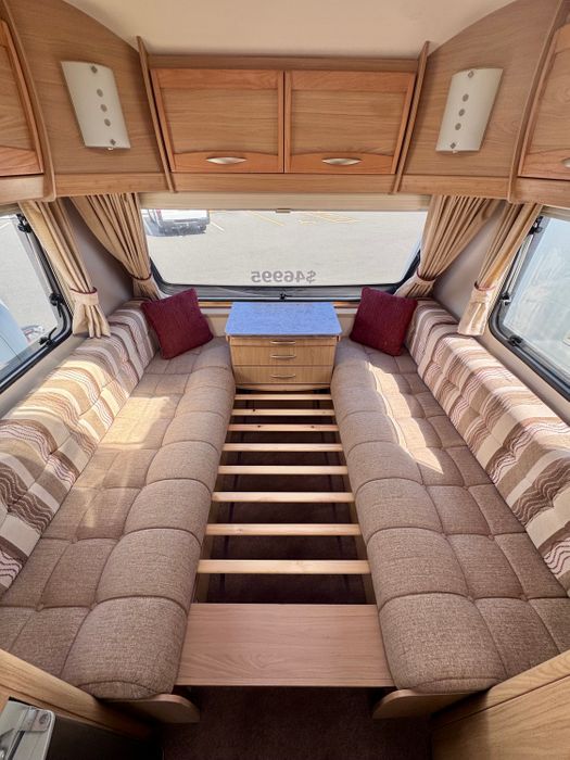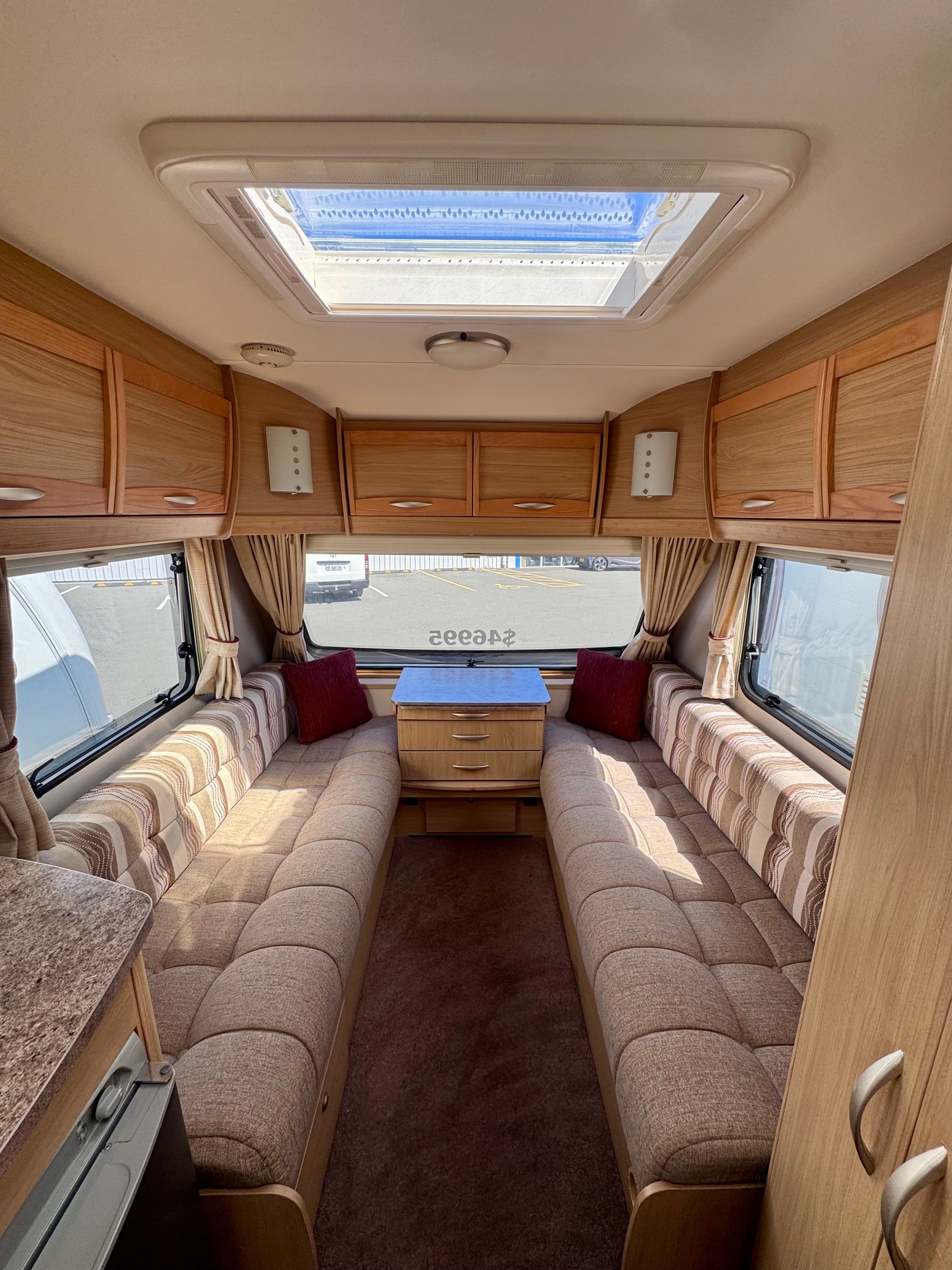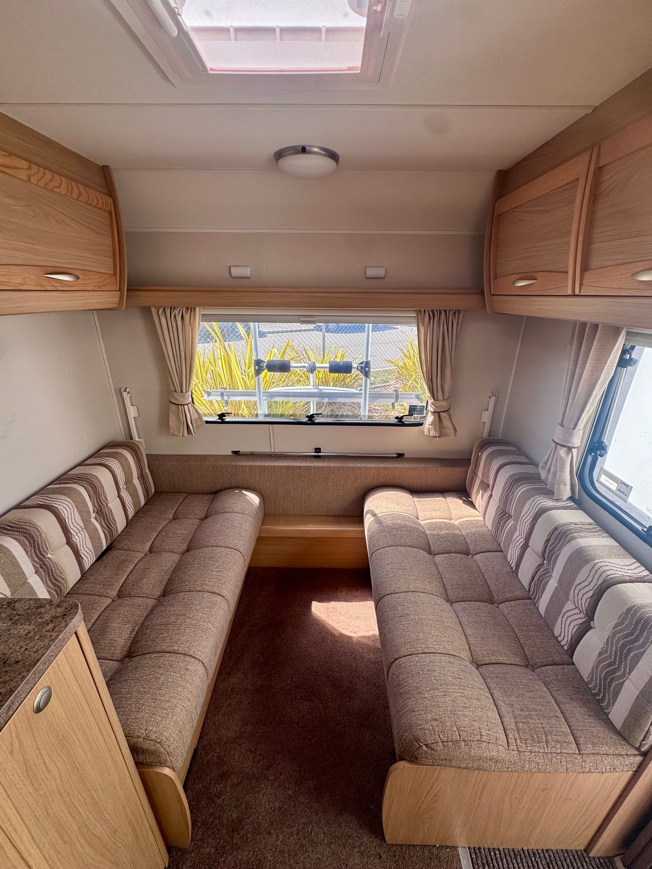2012 Elddis Xplore is a Five berth with a Rear single Dinette, with bunk and Front Double Dinette. The front and Rear settees give a good amount of seating for use during the day and convert for sleeping at night. The inside of the caravan has a modern finish with neutral tones. Above the front seating area is a Large Rooflight for natural light. The Whale Space Heating system ensures comfortable temperatures in the colder months.