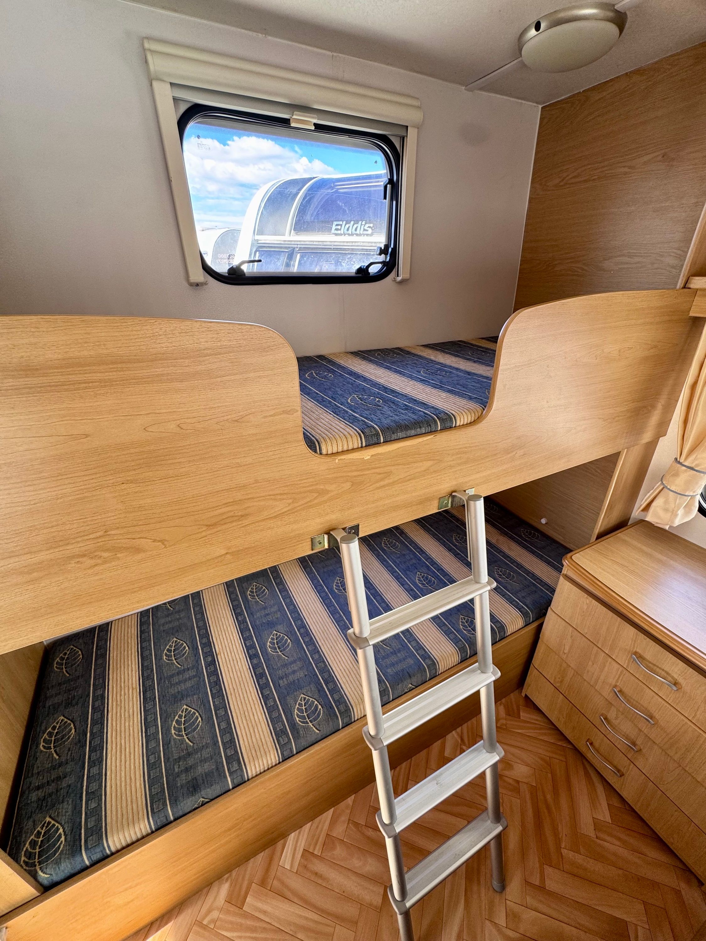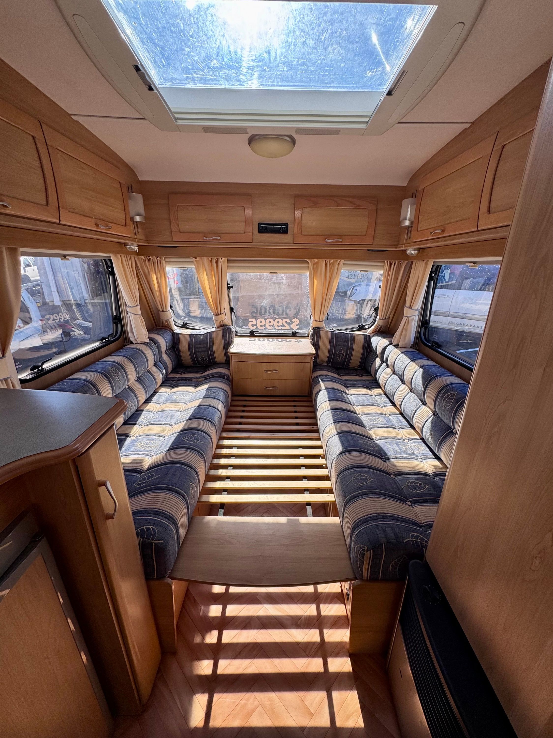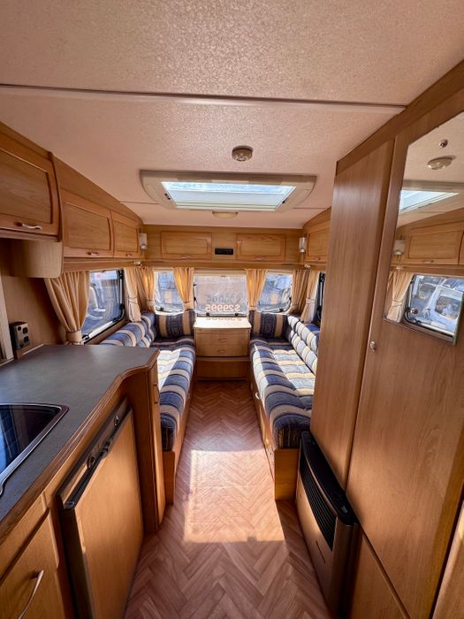 2005 Lunar Frystar is a 5 berth Caravan with a Front double Dinette, Rear Double Dinette and bunk. The front and rear settees give a good amount of seating for use during the day and convert for sleeping at night. The inside of the caravan has a modern finish with neutral tones. Above the front seating area is a Large Vent for natural light. The Truma Heating system ensures comfortable temperatures in the colder months.