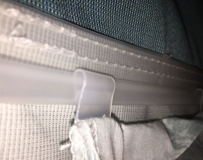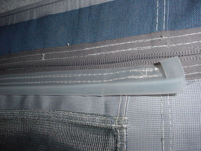 Or great to make your own! Sew above the windows, cut extra length into tabs (approx 1cm lengths) and sew upside-down to curtains. On the awning side, put a slit in the flat part of the track approx 1cm in from the edge and bend down into the J to create a curtain end stop.