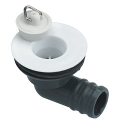 3/4" angled sink waste with a white top complete with plug. Compatible with Black PVC 3/4" Convoluted Hose.
