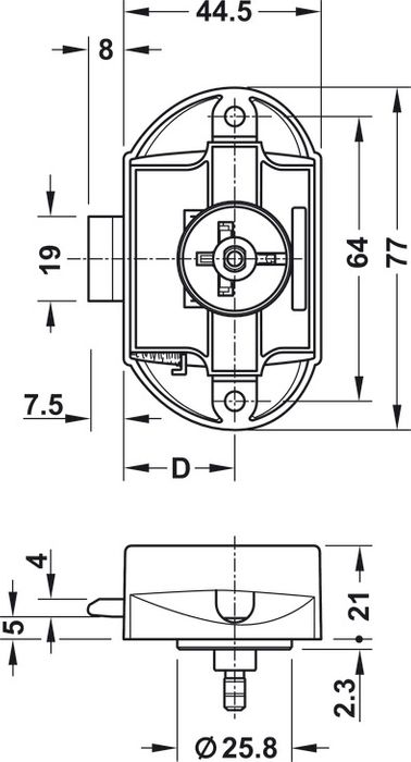 Heavier duty push lock. One sided with the provision for the rods. Button & rosette not included. Please see image above for specifications.